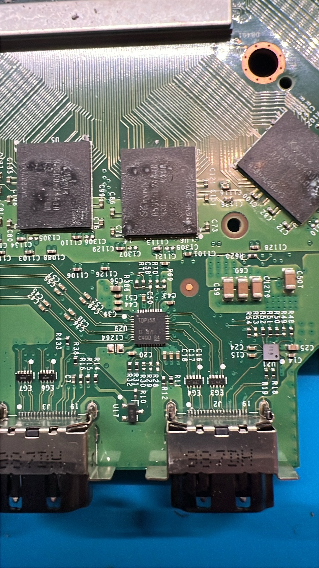 Remplacement de la puce UDP sur une Xbox One X, qui gère l’affichage de la console.