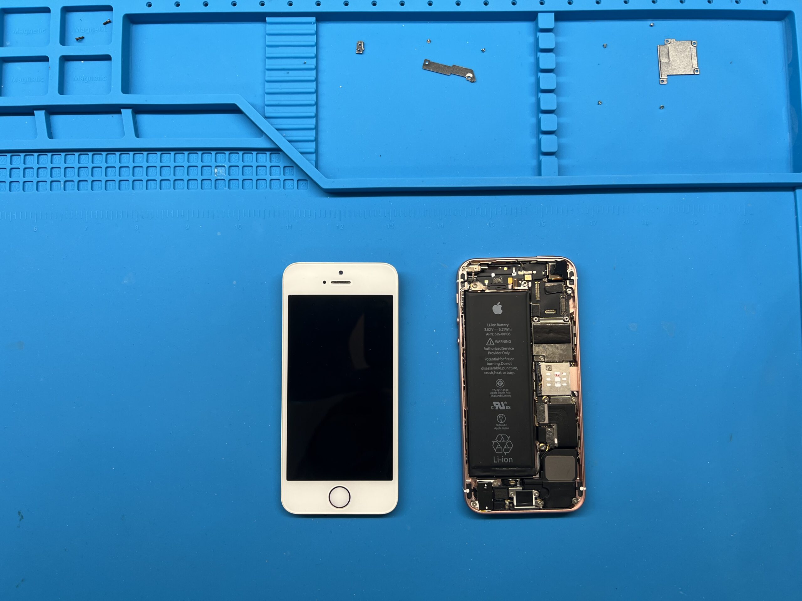 Remplacement d’une batterie d’un téléphone de prêt (Iphone SE 1ère Génération) qui était devenu inutilisable par son manque d’autonomie (quelques heures).